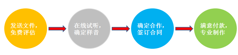 在線試聽樣音,由慕迪靈客服為您推薦和建議合適的配音員。然后由選定的配音員根據(jù)您的配音文稿,提供配音方案。